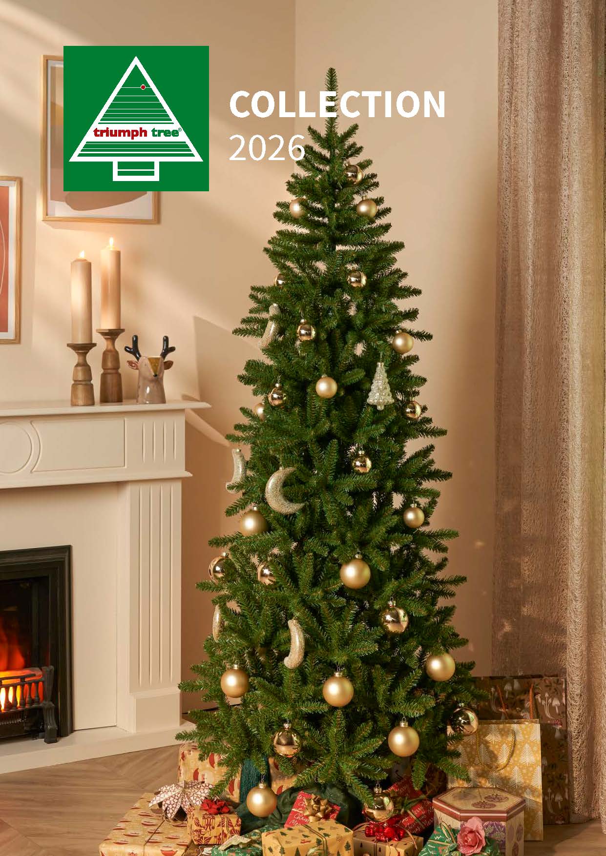 This catalog features all Triumph Tree Christmas trees, wreaths, garlands, and swags, organized into four categories: Premium Nature, Premium, Basics, and Specials